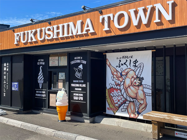 車を走らせ、道の駅「横綱の里ふくしま」へ到着。ここでのお目当ては、福島町出身の力士『千代の富士』をモデルにしたキン肉マンのキャラクター『ウルフマン』のコラボアイテム。ウルフマン、なかなかかっこいい!