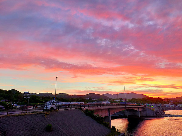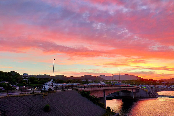 中心は町中で道の駅や国道から見える日本式城郭周辺は春の桜の季節が見どころです。白神岬は渡り鳥の聖地であることから秋から初冬にかけて美しい景色を見ることができます。また、折戸浜周辺は海の向こうに小島や大島が見え、海の色が鮮やかになる夏がおススメです。一年を通して見どころのある道。豊富な海産物や温泉もこの地域の魅力です。
