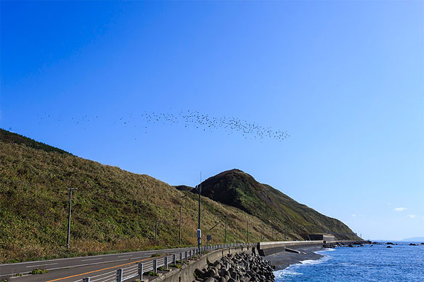 北海道最南端の白神岬。青い海の向こうに青森県の竜飛岬が見える。青森県までの距離はわずか20㎞ほどで、海底には青森とを繋ぐ青函トンネルが通っている場所だ。そしてここは、春と秋にはたくさんの渡り鳥を見られる場所。時期によっては300種類以上も見られるんだって!