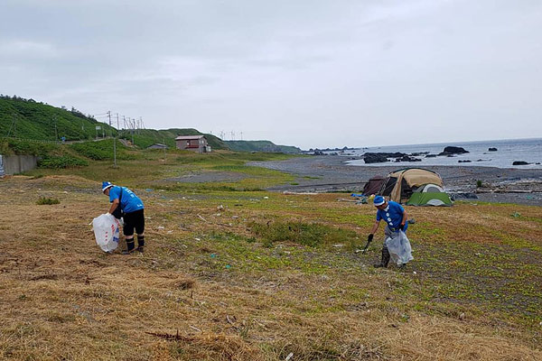 毎年海の日に日本財団とコラボして、ビューポイントパーキングにもなっている折戸浜駐車場、折戸浜海岸のゴミ拾いを行っています。
