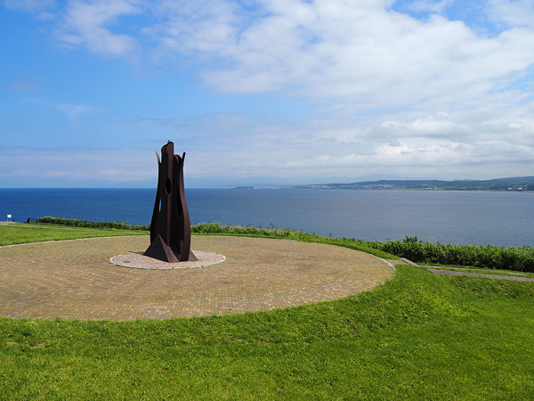 広さ8畳ほどの日本一小さい道の駅!江差の繫次郎というとんちと笑いを振りまいた昔の庶民アイドルの像があり、碑文に「笑え 笑え へば ええごとある」と刻まれている。繁次郎さん、いいこと言いますね!前浜から見える景色も絶景。